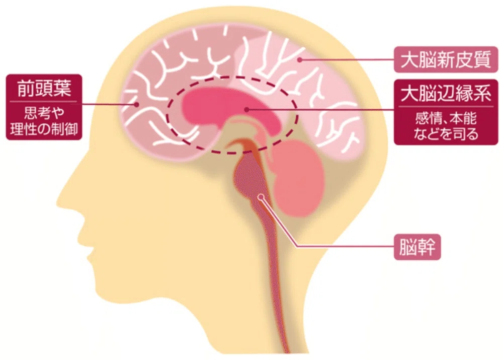 大脳辺縁系は感情や本能、記憶などを司さどる部分。